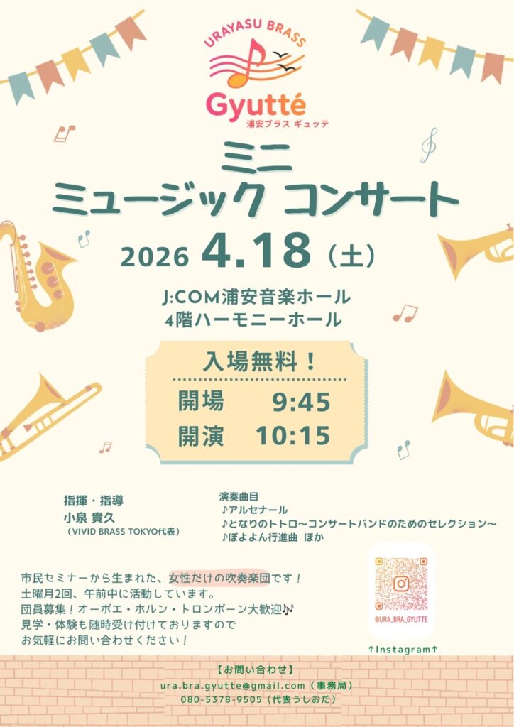女性だけの吹奏楽団《浦安ブラスGyutte》が、